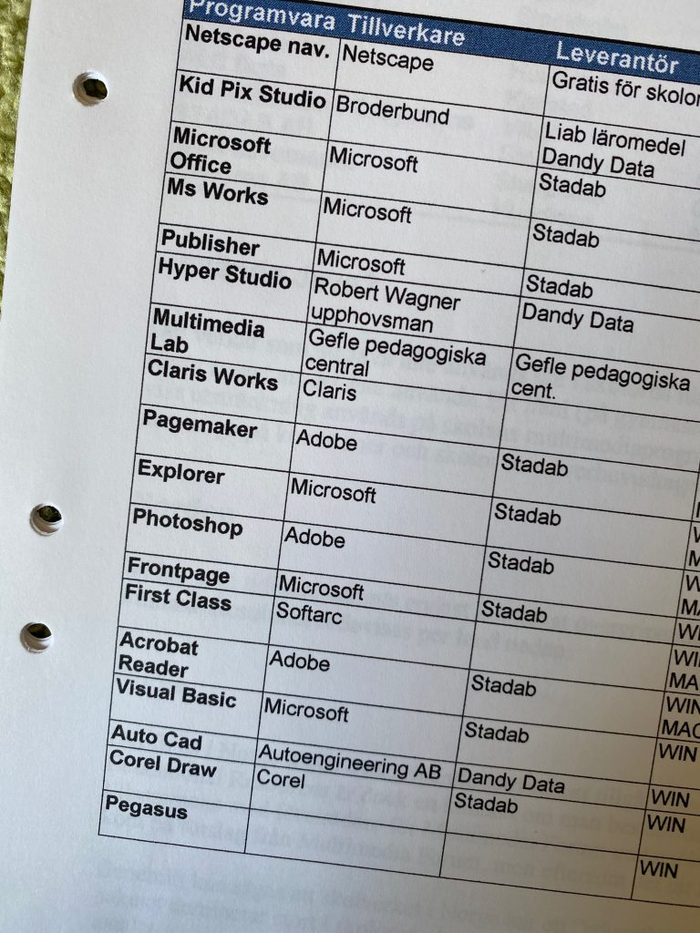 Våren 1998 fick jag i uppdrag av ett stort IT-bolag att göra en kartläggning av vilka 25 programvaror som var mest använda i skolan. Detta var en inte ovanlig eller märklig fråga vid denna tid. Kom ihåg att datorer hade inte använts mer än 5-10 år i skolan (i någon bredare mening) och att det 1993 fortfarande gick 38 elever på en dator i grundskolan (9 på en i gymnasiet).