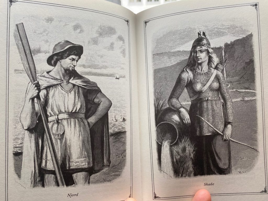 Bilderna i boken (många av kända konstnärer som Nyström, Zorn och Larsson) har inte riktigt klarat tidens tand på samma sätt som dikterna. Nedan två exempel på den lite överlastade stilen. Och det är inte bara Njord som ser ut som sjömän från ett varmare klimat … Kanske någon av konstnärerna gjorde sina illustrationer vid Medelhavets kust? De mer konstnärligt kunniga kan kanske kasta ljus på saken …