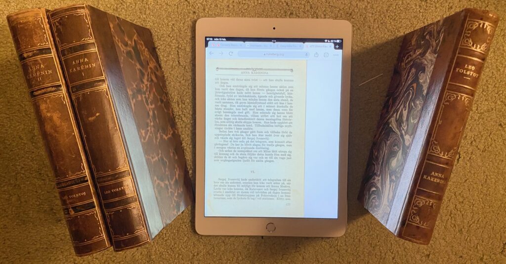 Översättningar och olika typer av bearbetningar av texter kan fascinera och irritera mig. Jag är helt på det klara med att översättare har en uppgift där olika, ibland motsägelsefulla, mål ska uppnås. Olika översättningar kan därför, i många fall, tillföra olika perspektiv på originaltexten (detta gäller inte minst översättningar som sker när man lärt sig mer om texten och/eller författaren). Å andra sidan kan mindre lyckade översättningar förstöra en bra text. I vilket fall tycker jag det är viktigt att det framgår vem som är översättare av en bok och när översättningen skett. Nedan ser vi tre översättningar av Tolstojs Anna Karenina (från höger Oscar Nachmans, Sigurd Agrells och, ja, vem då? det framgår inte). För mig gör denna brist böckerna till vänster mindre intressanta; det finns så att säga inget sätt att säkra kvalitet i översättningen …