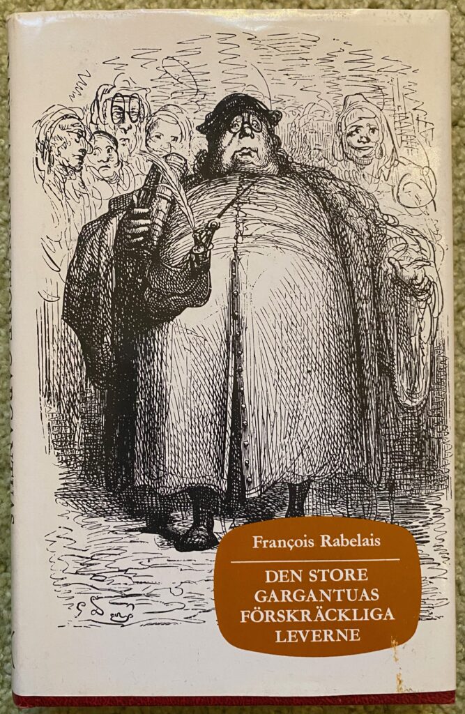 Nå, det intressanta med Rabelais berättelser som jätten Gargantua, hans familj och äventyr – allt samlat i fem böcker som senaste översattes till svenska av Holger Petersen Dyggve och utgavs i mitten på 1940-talet (vilket väcker tanken att förr i tiden – även i de kaotiska tiderna efter ett världsomspännande krig – kunde man ägna den klassiska litteraturen den uppmärksamhet den så väl förtjänar och till och med få böcker utgivna och lästa) – är att de i dag upplevs som tämligen stillsamma, nästan konventionella.